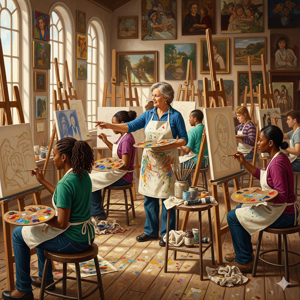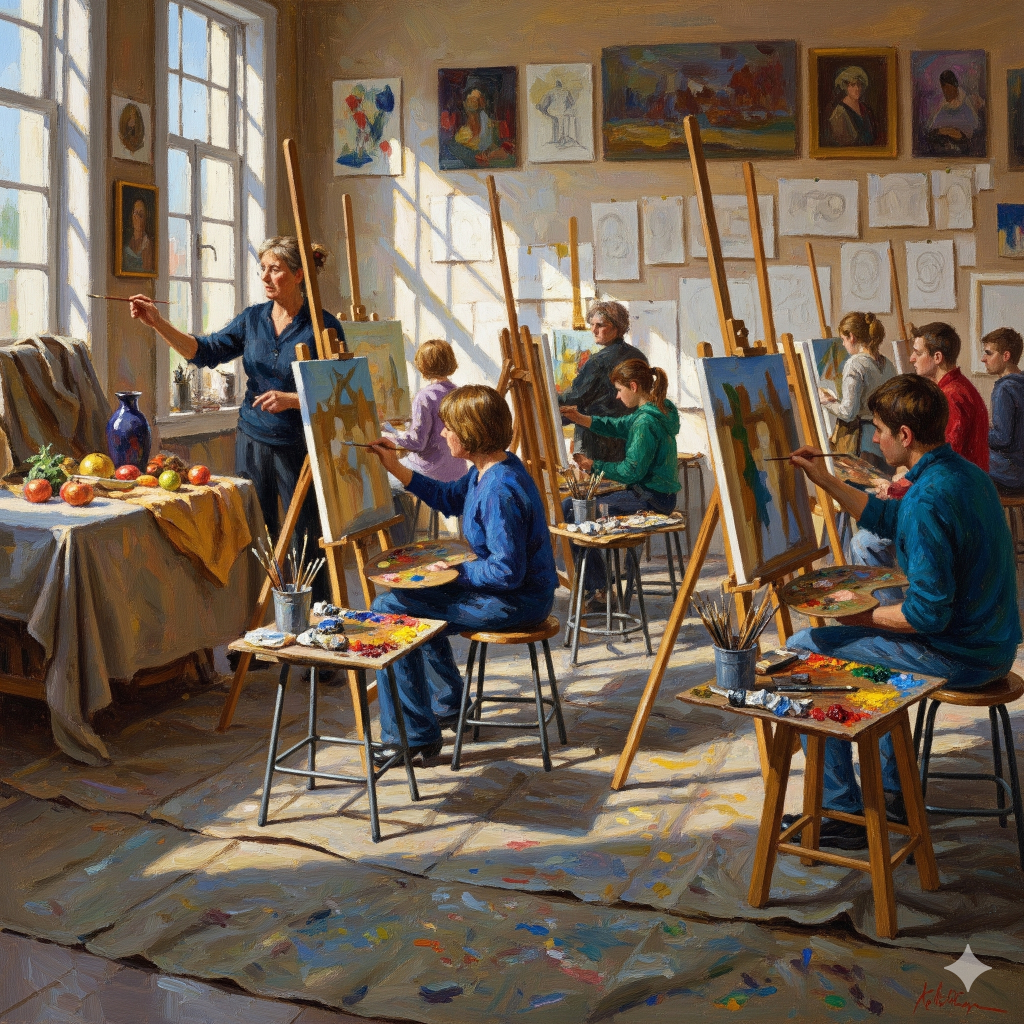 #تشویق هنرجویان به پیدا کردن و توسعه سبک شخصی خود در نقاشی پرتره
