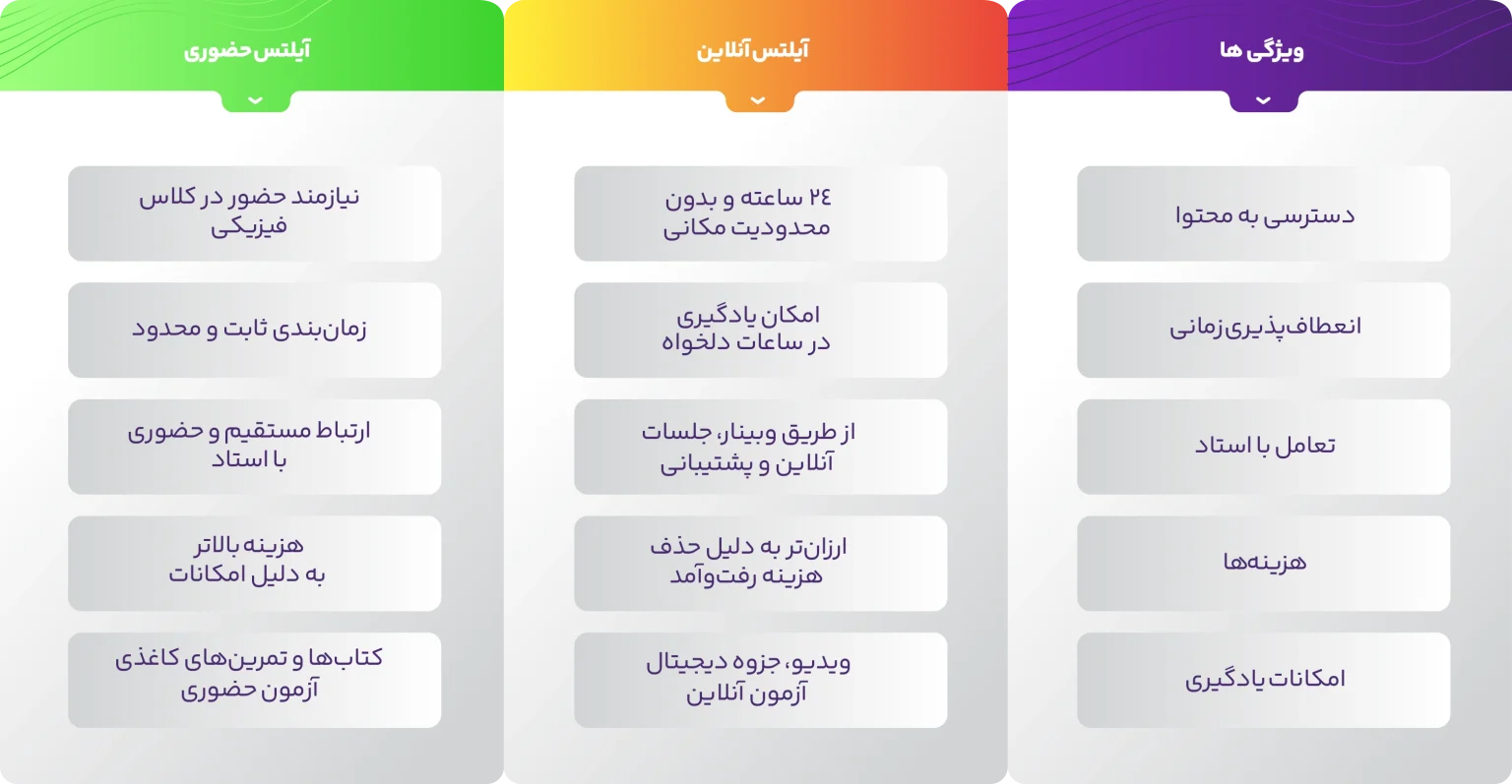 مقایسه دوره آنلاین و حضوری آموزش آیلتس