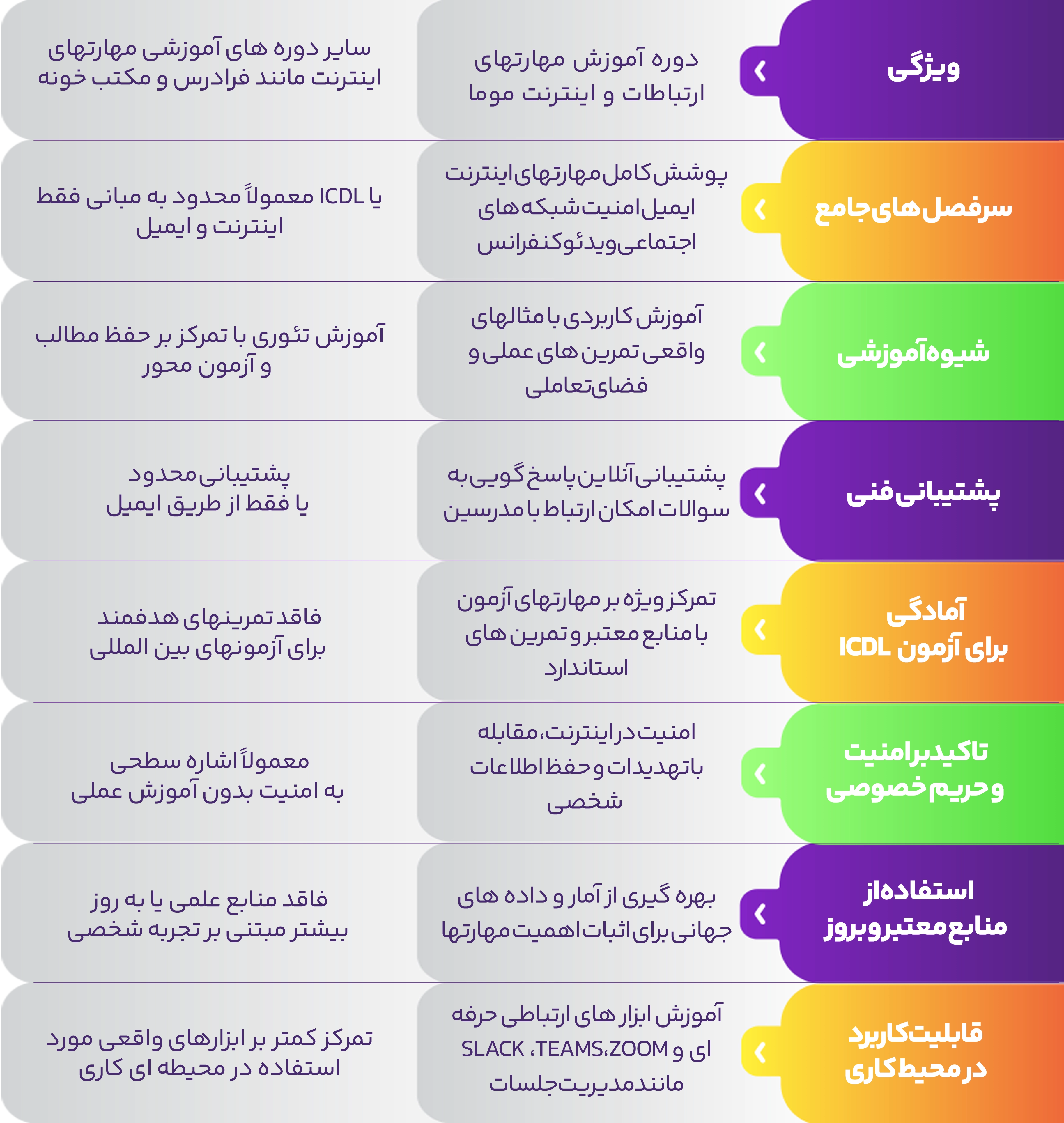 از سوی دیگر دوره حضوری فرصت تعامل مستقیم با مدرس و تمرین مکالمه گروهی را به وجود میآورد که برای تثبیت مهارتهای گفتاری بسیار مفید است. بااینحال دوره آنلاین بهویژه برای کسانی که برنامه فشرده دارند یا در شهرهای دیگر زندگی میکنند، گزینهای کاربردی و مقرونبهصرفه بهشمار میرود. جدول زیر اطلاعات کاملتری در این زمینه به شما ارائه میدهد.