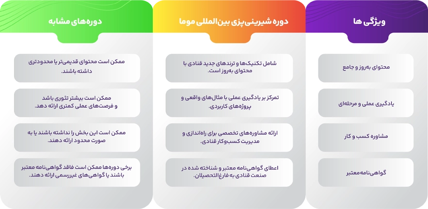 تفاوت دوره شیرینی پزی حرفهای موما با دورههای مشابه چیست؟